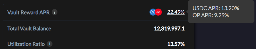 Currently, the size of the vault is $12.3m, against a total open interest of $1.67m. The vault has earned 13.20% APR based on the last 7-day fee payouts (excluding traders' PnL) as well as 9.29% OP rewards.