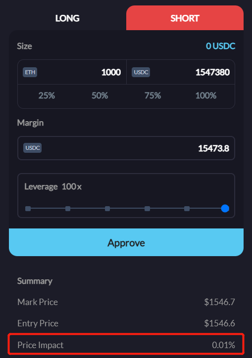 As described in the documentation, Pika uses concentrated liquidity (which we believe is a matter of setting parameters to lower slippage and not actually having liquidity) and slippage is very low. Putting a $1.5m trade in ETH only has a slippage ratio of 0.01%. For CRV and LINK, a $1m trade will have about 3.5% slippage, and 2.0% for AVAX and MATIC. However, for each token, there's a cap as to how much long and short imbalance can be allowed, so no one can take a one-sided trade for a huge value.